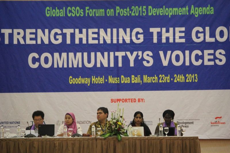 Ourvoice.or.id –Sekitar 300 masyarakat sipil dari 31 negara mengadakan pertemuan global untuk membahas strategy pembangunan pasca 2015 di Hotel Goodway Nusa Dua Bali, 23-25/3/2013.