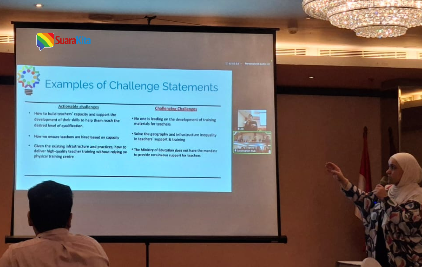 Hari pertama lokakarya difokuskan pada penyelarasan tantangan bersama dalam pelokalan. Peserta yang berasal dari jejaring kemanusiaan nasional, anggota IHCP, serta organisasi masyarakat sipil (OMS) dari berbagai wilayah memvalidasi temuan lokakarya subnasional di Mataram, Makassar, dan Medan. Diskusi yang difasilitasi oleh Response Innovation Lab (RIL), dengan fasilitator Ruba dan Weicong dari Jordania, menggali hambatan struktural dalam konteks lokal dan celah internal nasional seperti ketergantungan pendanaan, relasi kuasa dalam koordinasi, kesenjangan kapasitas respons kebencanaan, serta tantangan legitimasi dalam kepemimpinan aktor lokal. Sesi ini menghasilkan rumusan awal pernyataan tantangan nasional serta pemetaan ekosistem kemanusiaan Indonesia. Peserta dibagi dalam 4 kelompok yang kemudian diminta menjawab pertanyaan kritis dari fasilitator.