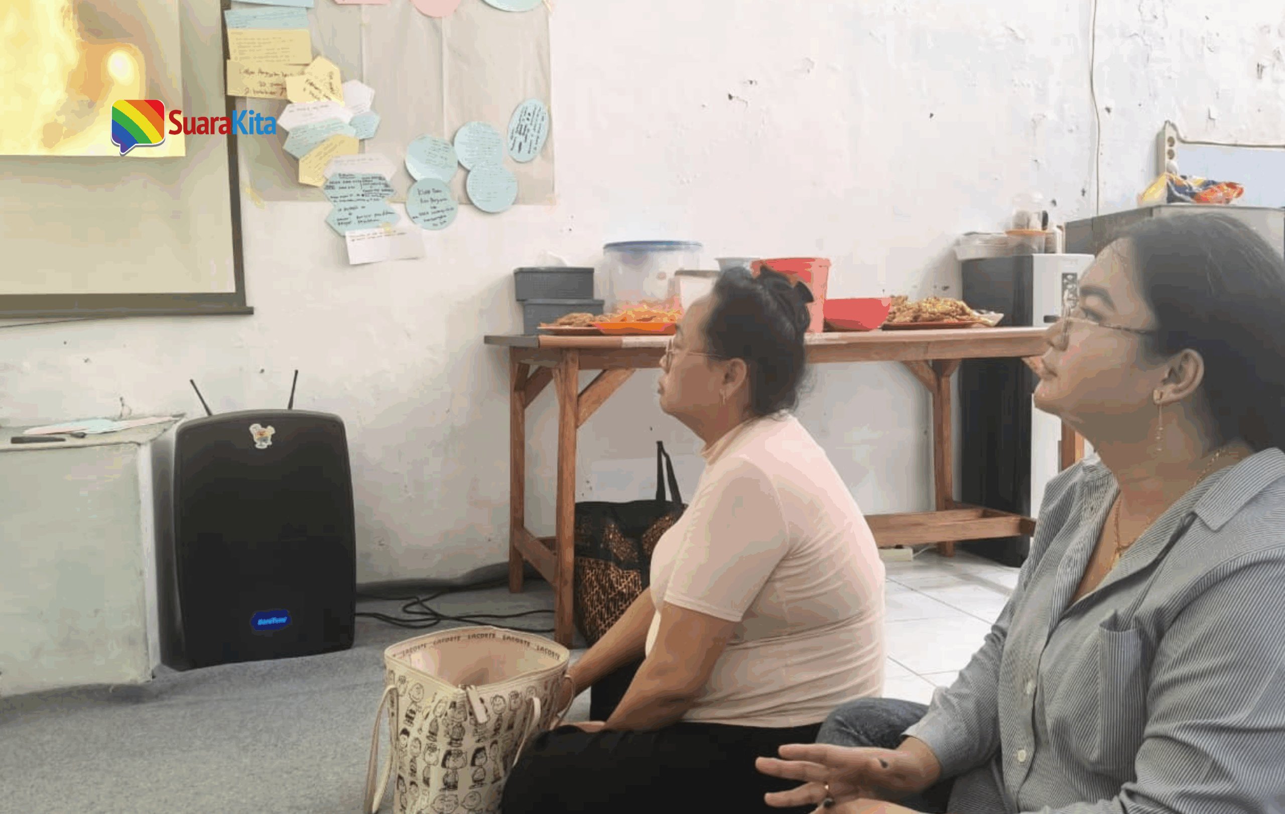 Pas lagi seru-serunya, kita rehat sejenak buat Buka Puasa Bersama. Momen ini bener-bener vibes-nya kekeluargaan banget; ada canda tawa sambil berbagi takjil, sejenak melepas penat sebelum lanjut nonton sampai tuntas. Setelah film selesai, kita nggak langsung pulang. Kita duduk melingkar buat sesi perkenalan supaya makin bonding. Di sinilah poin pentingnya: kita kembali menegaskan kalau Suara Kita dan Pustaka Pelangi adalah ruang aman (Safe Space) melalui sosialisasi PSEAH (Protection from Sexual Exploitation, Abuse, and Harassment). Kita pengen Kamu tahu kalau di sini, Kamu diterima sepenuhnya tanpa rasa takut akan diskriminasi.